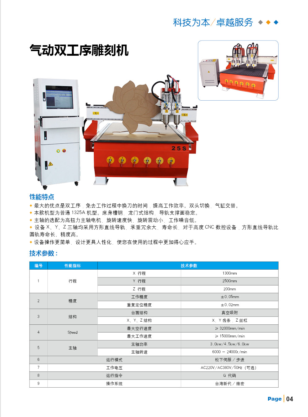 1325真空吸附木工雕刻机/气动双工序雕刻机